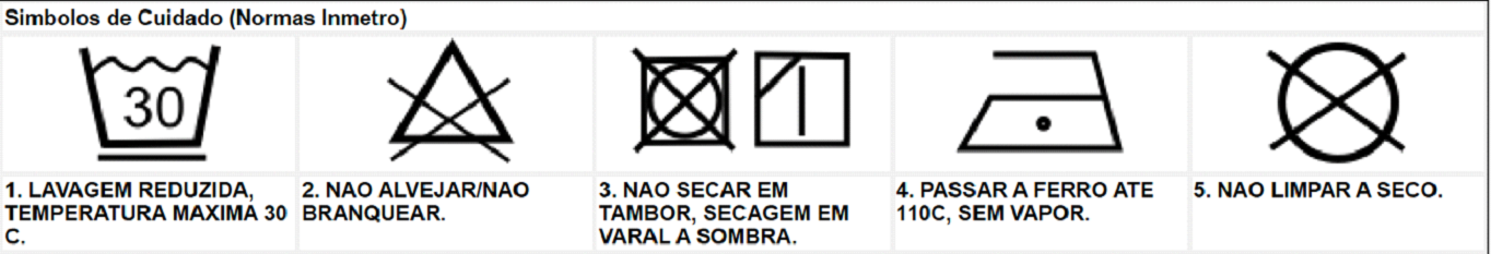 - Não secar em tambor (secadoras). Prefira secagem em varal, sempre na sombra.